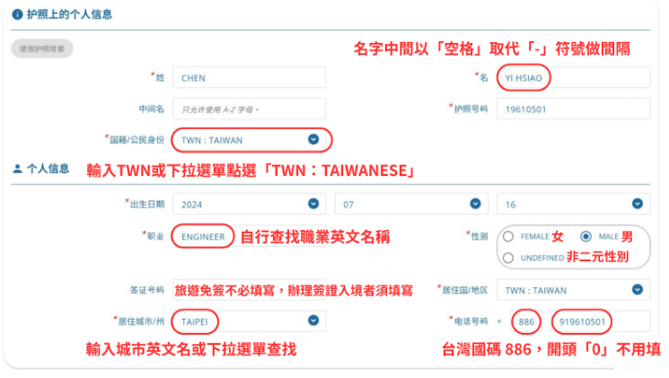 Step 3:填寫旅客資訊|護照資訊&個人資訊