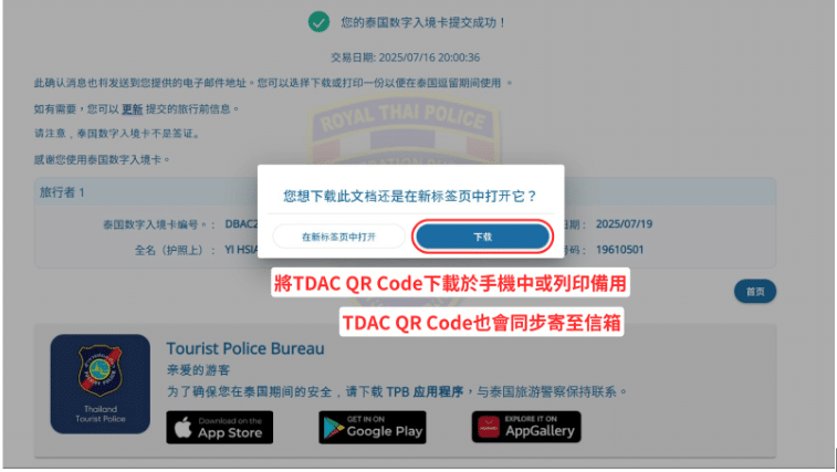 Step 6:下載並ä¿å­˜ TDAC QR Codeï¼ˆæœƒåŒæ­¥å¯„至信箱)